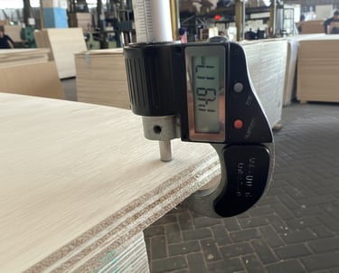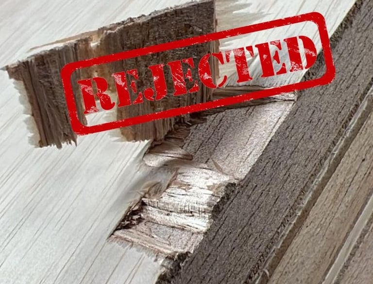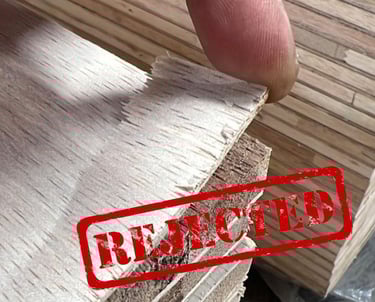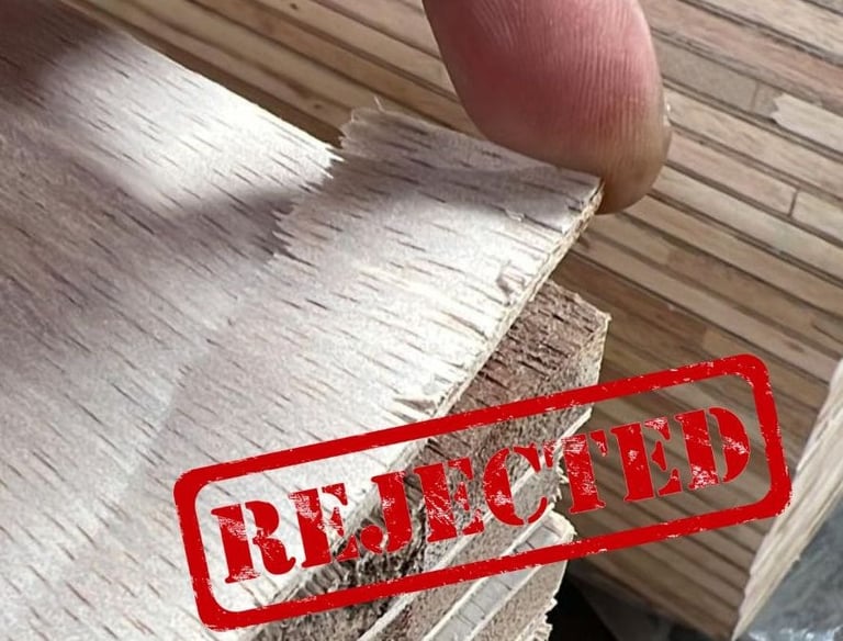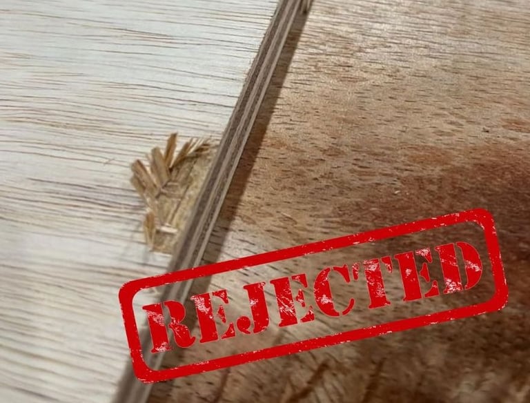 We flip the panel to check the flatness, face and back. If necessary, we put the panel aside for additional repairs. Or if we find delamination, we take them out.
